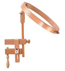 Пяльцы для вышивания с креплением к столу, возможная толщина столешницы до 75 мм, материал – бук, тройная склейка, полированные с защитным лаком, бронзовые стягивающие винты, регулировка по высоте и углу наклона.