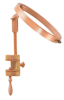 Пяльцы для вышивания с креплением к столу, возможная толщина столешницы до 35 мм, материал – бук, тройная склейка, полированные с защитным лаком, бронзовые стягивающие винты, регулировка по высоте и углу наклона.