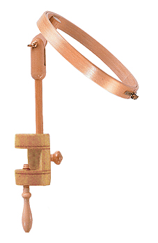 Пяльцы для вышивания с креплением к столу, возможная толщина столешницы до 35 мм, материал – бук, тройная склейка, полированные с защитным лаком, бронзовые стягивающие винты, регулировка по высоте и углу наклона.