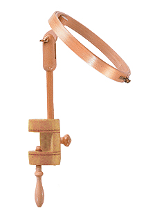Пяльцы для вышивания с креплением к столу, возможная толщина столешницы до 35 мм, материал – бук, тройная склейка, полированные с защитным лаком, бронзовые стягивающие винты, регулировка по высоте и углу наклона.