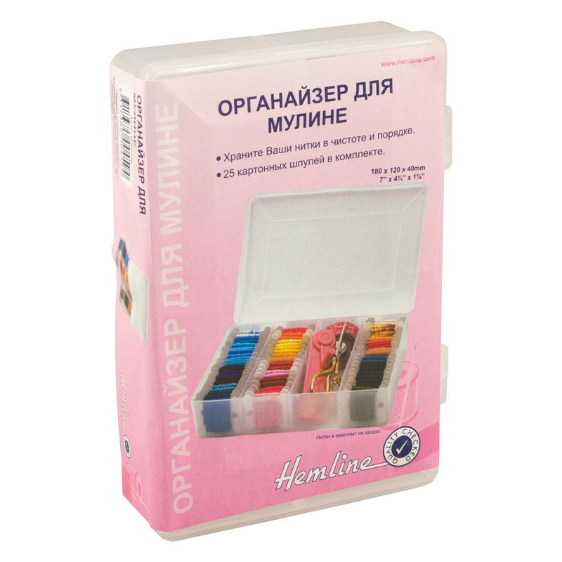 Коробка для организации хранения нитей мулине. Удобно хранить намотанными на шпули. В коробке 7 стационарных ячеек, 6 для шпулей и 1 для аксессуаров, можно положить ножницы, иглы.