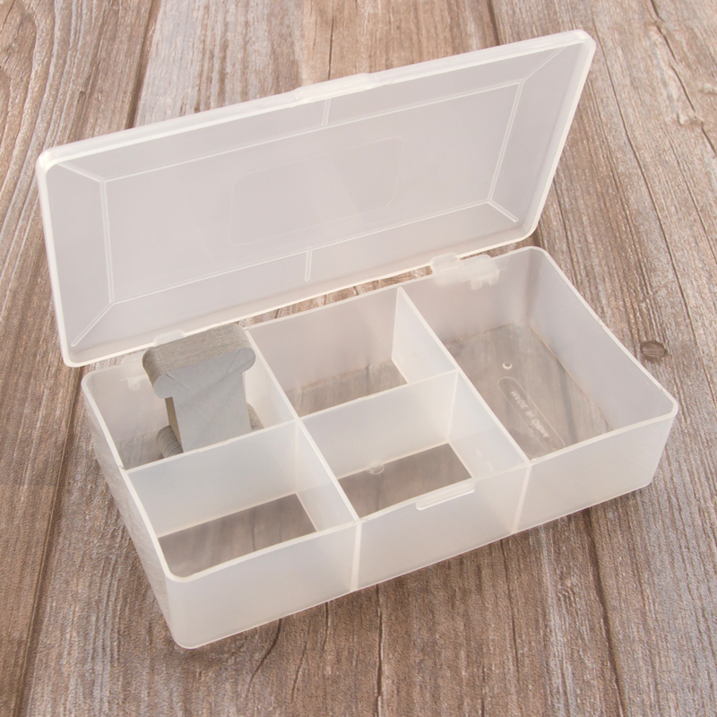 Коробка для организации хранения нитей мулине. Удобно хранить намотанными на шпули. В коробке 5 стационарных ячеек, 4 для шпулей и 1 для аксессуаров, можно положить ножницы, иглы.
