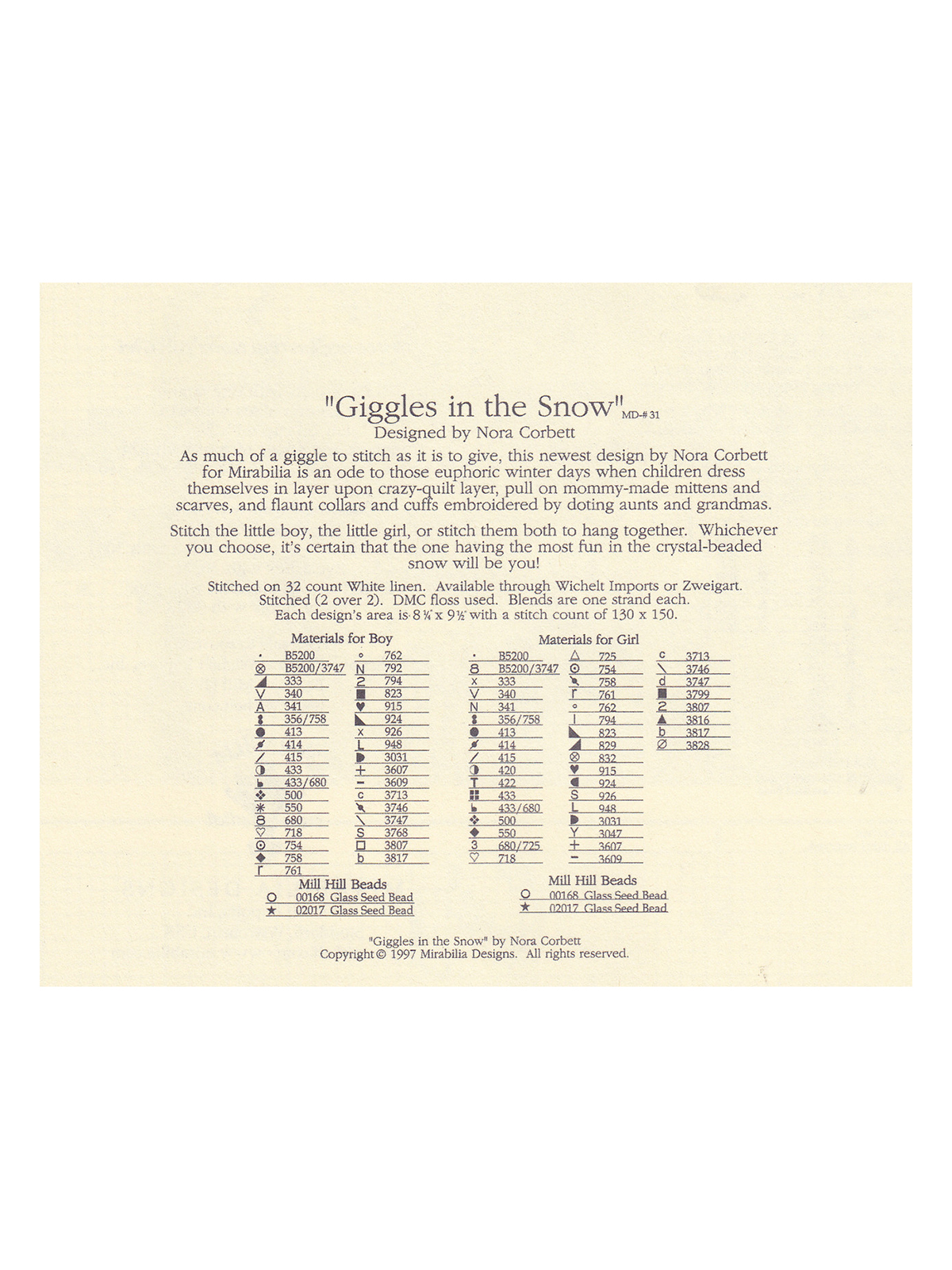 В комплектации черно-белая символьная схема. Комплект бисера и специальных украшений Mill Hill для схемы приобретается отдельно MD63E.