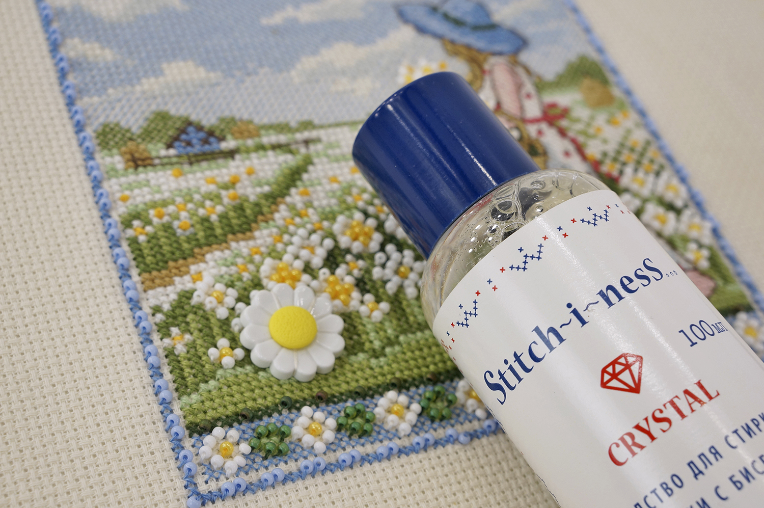 Stitch-i-nesS CRYSTAL (концентрат) используйте для деликатной стирки вышивки (на ткани):