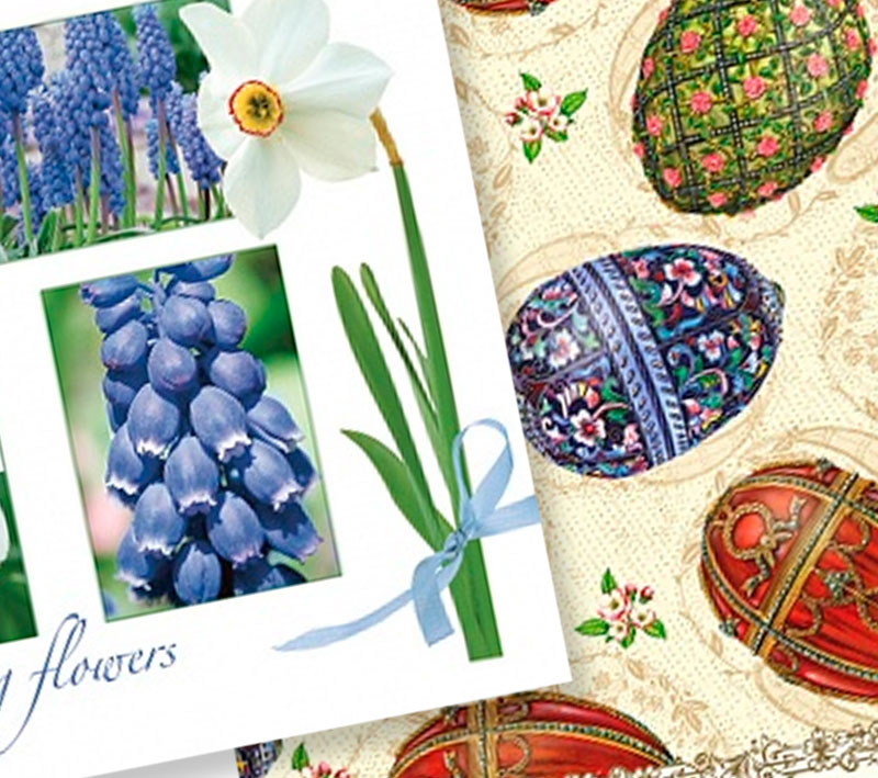 Собственная графическая студия позволяет компании предлагать покупателям товары с самыми разными дизайнами, а также постоянно обновлять коллекции с учетом модных тенденций и особенностей различных рынков сбыта. Ассортимент только праздничных салфеток насчитывает около 800 мотивов, в числе которых детские, свадебные, повседневные, поздравительные, посвященные Новому году и Рождеству, Пасхе, Дню святого Валентина и другим праздникам.