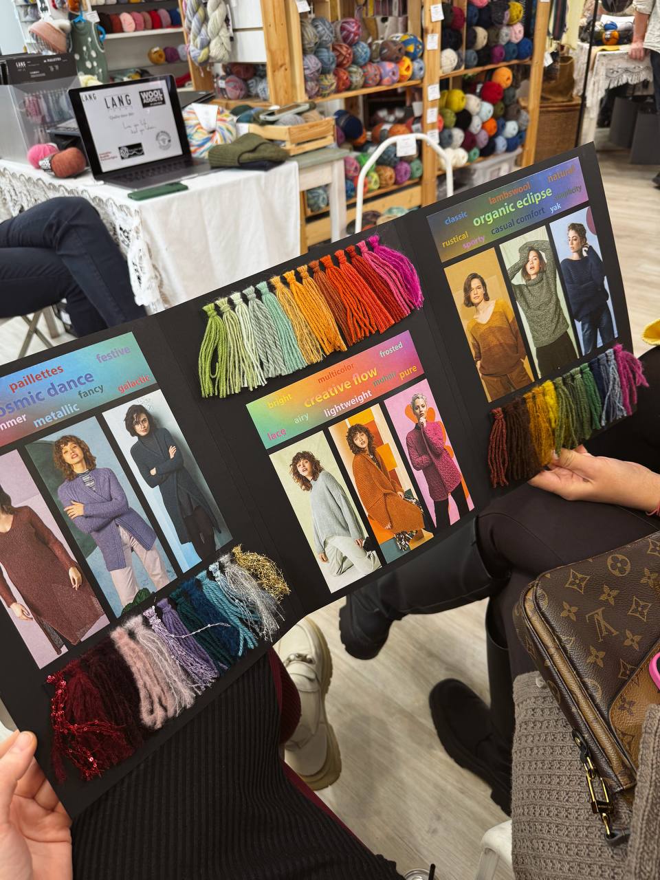 В магазине можно было посмотреть образцы пряжи, цветовые карты, а также познакомиться с новинками зимнего сезона.
