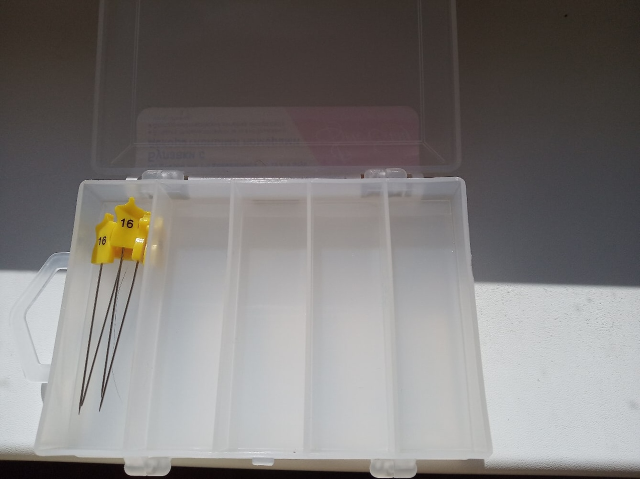 Лежат они в пластиковом кейсе, который разделён на 2 больших отсека, они открываются с разных сторон. Защёлки, которые закрывают кейс, хорошие В свою очередь каждый отсек разделён на 5 частей, в каждой из них можно свободно положить 10 булавочек.