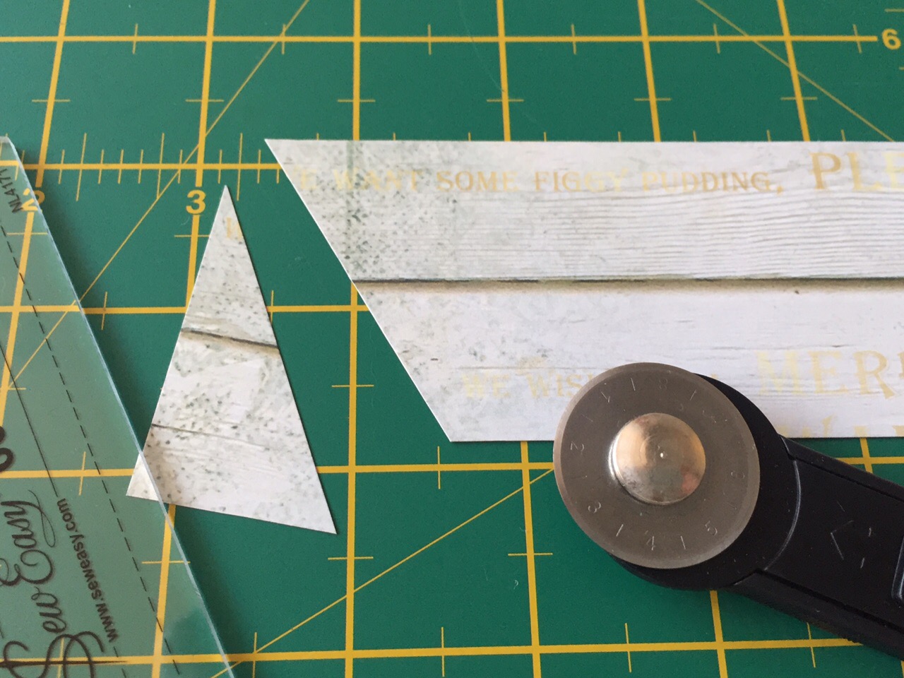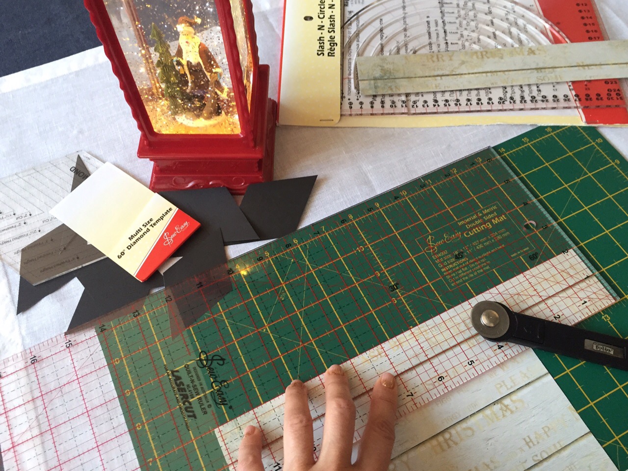 3) дальше остается передвигать лекало и, совмещая линии, отрезать необходимое количество ромбов