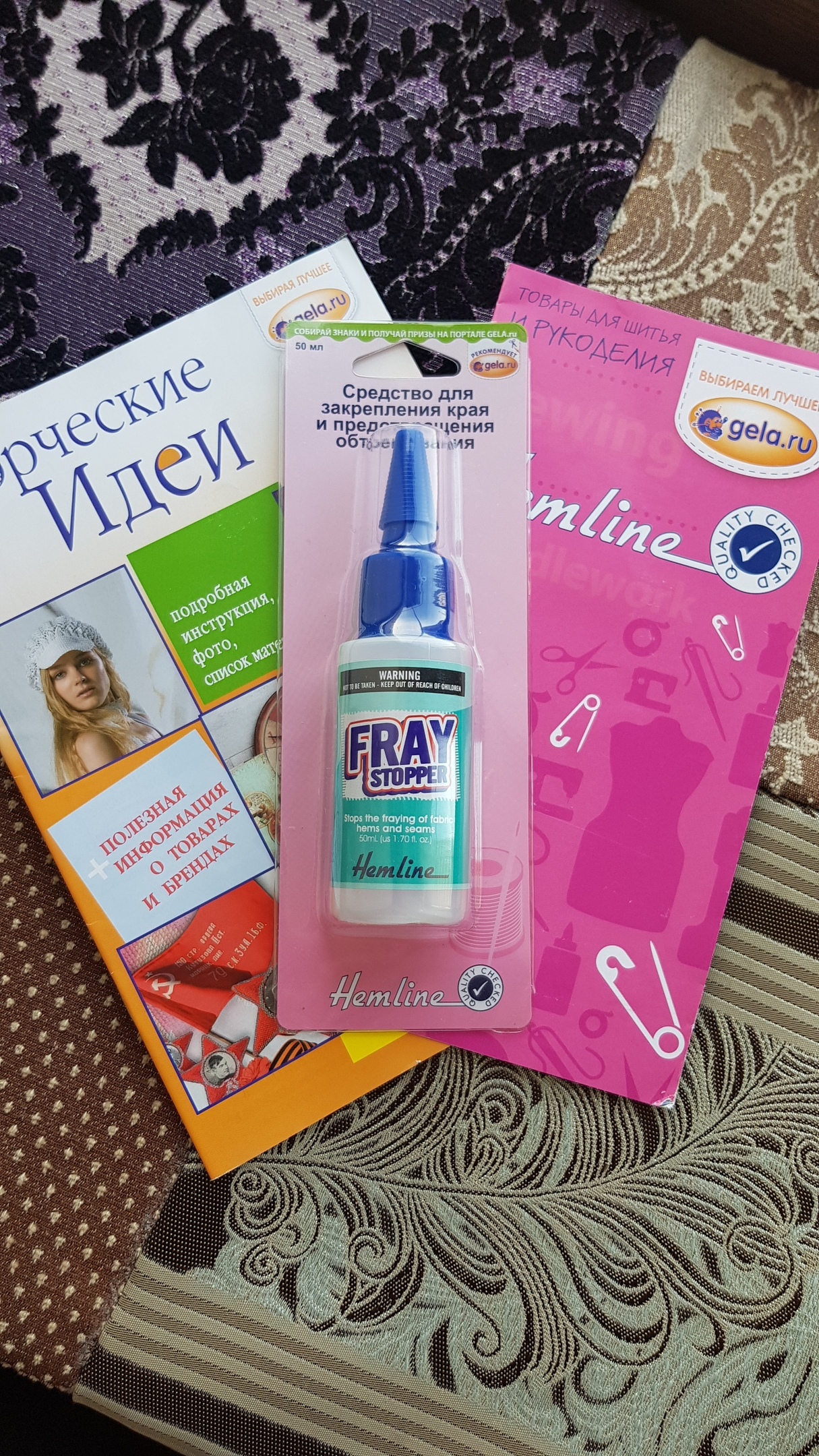 Добрый день! Хочу рассказать Вам о товаре, любезно предоставленным мне для тестирования порталом GELA.ru. Это "Средство для закрепления края и предотвращения обтрёпывания", 50 мл. от фирмы Hemline. Артикул товара - 802