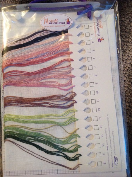 Также в этом наборе используются нитки мулине FINKA ( Австралия), что не может не радовать! Вышивать этими нитками лично для меня в удовольствие , цветовая гамма очень нежная , яркая! Ниточки ложатся аккуратненько , ровненько , самое главное не протираются!!!так же ниточки прикреплены на очень удобный планшет , где не надо завязывать а легко просовывается в прорезь , что бы вытянуть ниточку не надо вытаскивать и развязывать всю пасму и это очень удобно!!!