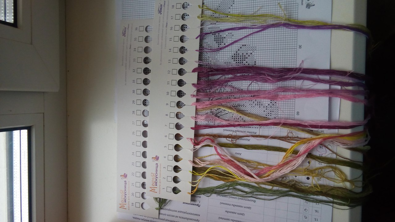 Отдельное слово об органайзере для мулине. Первый раз вижу такой удобный! Прекрасно можно отделить одну нить от пасмы, да и хвостики ниток хорошо хранить. Напротив прорезей для нити есть место для записи значка обозначения цвета. Один раз все написала и в лист с ключом можно не смотреть.