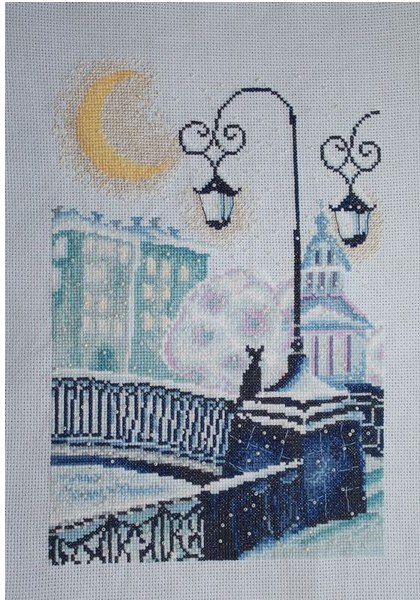 Набор очень хороший, качество материалов радует: и канва, и бисер, и нитки, и игла) Ниточек осталось много) Цена набора тоже довольно доступная) Работу очень оживляют снежинки-бисеринки и металлизированные нити - свет фонарей и месяца))
