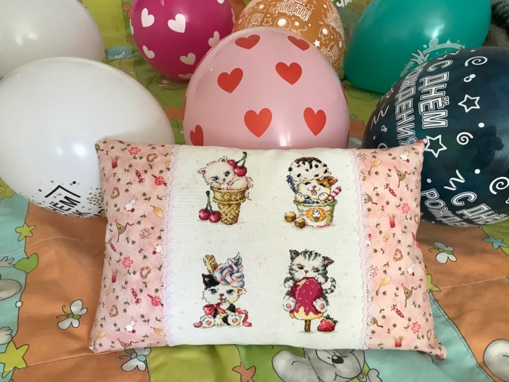 Рукодельница Светалана Головина уже порадовала свою дочурку этой сладко-нежной красотой, оформив вышивку в подушку. Состав и качество канвы отлично подходят для таких дизайнерских идей.
