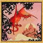 5. DRAGON ROUGE/КРАСНЫЙ ДРАКОН от Nimuë также представляет собой отдельный фрагмент из набора«Маленький рыцарь». Главный герой здесь - дракон, который мечтает о своём замке. Существует две версии для вышивания этого дизайна - на аиде и на льне. Кому стоит непременно вышить набор? Тем, кто в новом году мечтает о своем доме, или большим любителям драконов.