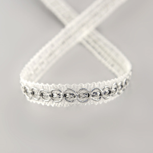 Тесьма PEGA декоративная, белая с люрексом, 9 мм . Арт 844180909DW601