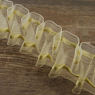 Шторная лента представляет собой плотную и очень прочную полоску из 100% полиэстера с равномерно размещёнными петлями для крючков и продетым вдоль всей тесьмы шнуром для стяжки. Одинарная или двойная протяжка шнура в шахматном порядке обеспечивает разные виды сборки: