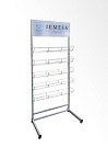 Стенды, на которых выставляют товары для рукоделия, представляют собой металлические сетки, закреплённые на высоких стойках. Приблизительно на уровне глаз покупателя, чуть выше и чуть ниже на сетки крепятся навесные лотки и крючки, на которые выставляют катушки и бабины с метражным товаром. В специальные пазы могут вставляться длинные оси для бабин и катушек, чтобы быстро отматывать необходимое количество товара и сматывать обратно.