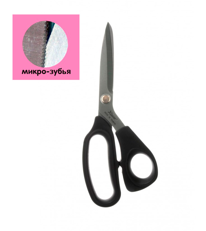 • Нижнее лезвие имеет заточку в виде микрозубьев, которая фиксирует скользкие и высокопластичные ткани в процессе разрезания, срез получается ровным и максимально точным. Длина режущей части 80 мм. Предназначены для шелка, шифона, органзы, трикотажей вискозных, джерси. Рекомендуем профессиональным портным и любителям шитья для кроя всех тканей групп: блузочные, плательные, костюмные ткани.Также рекомендуем использовать для кроя тканей шторной группы и х/б тканей в пэчворке.Ножницы комфортны для интенсивного использования, имеют удобную ручку и долговечный соединительный болт. Во избежания скорого затупления используйте ножницы для тканей только по прямому назначению.