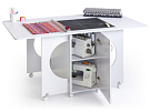 Для раскроя желательно иметь раскладной стол с откидными крыльями, под которым на полках будут располагаться выкройки, лекала, мелки, раскройные ножи, ножницы, прокладочные материалы, клеевые и другие ткани. Для выполнения швейных работ удобно, когда швейная машина или оверлок установлены на платформе чуть ниже уровня столешницы. Возле стола с машиной или оверлоком на расстоянии руки должна находиться тумба для большого количества швейных принадлежностей, так как в процессе шитья или вышивки могут понадобиться: