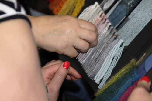 В заключении презентации нашим гостям было предложено попробовать пряжу LANG Mohair Luxe "наощупь" и повязать из неё.