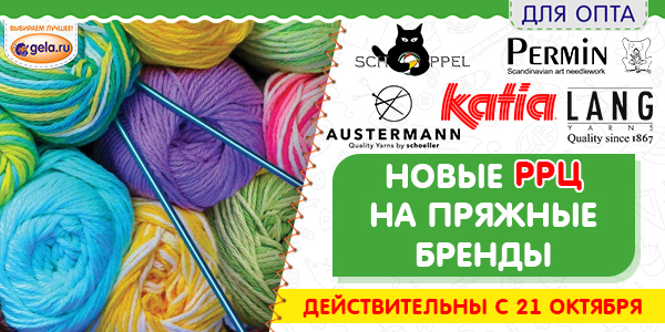 С 21 октября 2024 вступят в действие новые РРЦ на товары направления "Вязание" от производителей AUSTEMANN, LANGYARNS, KATIA, SCHOPPEL, PERMIN (пряжа).