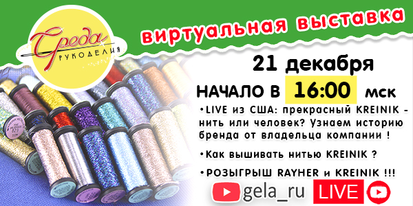 ![]() Дорогой друг! 21 декабря в 16:00 (мск) в прямом эфире на YouTube gela_ru: KREINIK - нить или человек? Вышить корону? Икону? Костюм на новый год? С металлизированными нитями KREINIK - это не проблема, а только удовольствие! Эластичные, мягкие, с эффектным блеском - смелым или чуть заметным, нити KREINIK с богатой цветовой палитрой не имеют себе равных в мире!