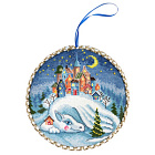 В диаметре пинкип 12,5 см, что делает его удобным для размещения на ёлочке. Новогодние цвета - белый, оттенки красного и тёмно-синий - в комбинации с золотыми бисером, шнуром и лентой придают вышивке праздничный новогодний образ. «Снежный дракон» (арт. 21.002.32) с электронной схемой – уже на gela.ru