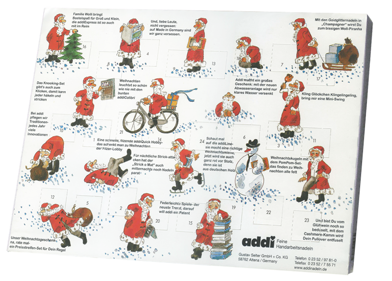 Господин Томас Сельтер является не только талантливым руководителем, но и гениальным пиарщиком и поэтом, воспевающим в стихах вое любимое детище - спицы, крючки и прочие аксессуары для ручного вязания! Каждый год он выпускает поэтические АДВЕНТ-КАЛЕНДАРИ к Рождеству, и рассылает по почте своим партнерам по всему миру.