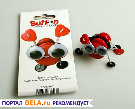 В наборе пастельные зеленые и голубые пуговицы, проволока и подвижные веселые глаза – все, что нужно, чтобы сделать своего Пуговичного Дружочка!