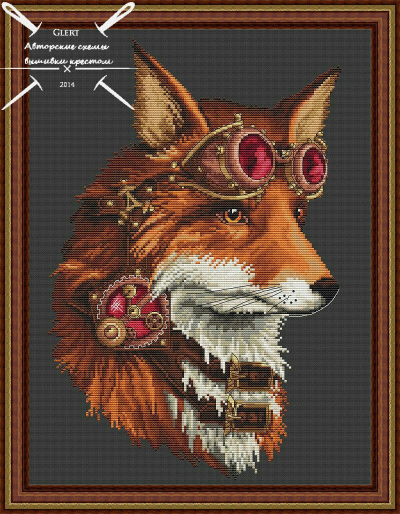 Это моя первая канва равномерного переплетения крупного каунта, но я решила попробовать. Для теста я выбрала схему "Лис-стимпанк" ( дизайнер Валентина Светлова).