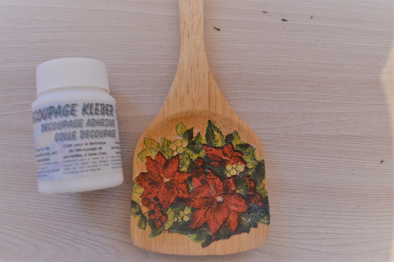 Для работы мне потребовалась : деревянная лопатка, салфетка для декупажа, кисти, перламутровый пигмент и тестируемый материал фирмы EFCO.