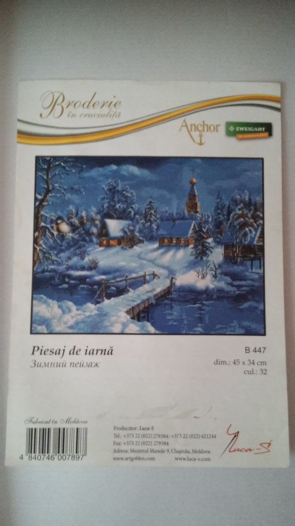 Набор "Зимний пейзаж" арт G447 Набор шикарный! Комплектация-канва Zweigart,18 каунт, с разлиновкой. Нитки-мулине Anchor,намотаны на три органайзера,с указанием значка,используемого в схеме. Нитки не разрезаны,что мне кажется очень удобным. Каждый может отрезать нить привычной длины. Мулине отличного качества,прокрашенные, без брака в виде узелков. Оттенки подобраны великолепно! Работа получается сочной, яркой и очень радует взгляд! Схема напечатана на 12 листах, формат А3,если не ошибаюсь. Печать качественная,без смазывания краски,значки крупные, хорошо читаемые. Вышивание доставляет массу положительных эмоций! Эта фирма меня настолько впечатлила,что я заказала себе еще один набор от Luca-S. Жду с нетерпением его прибытия!!!