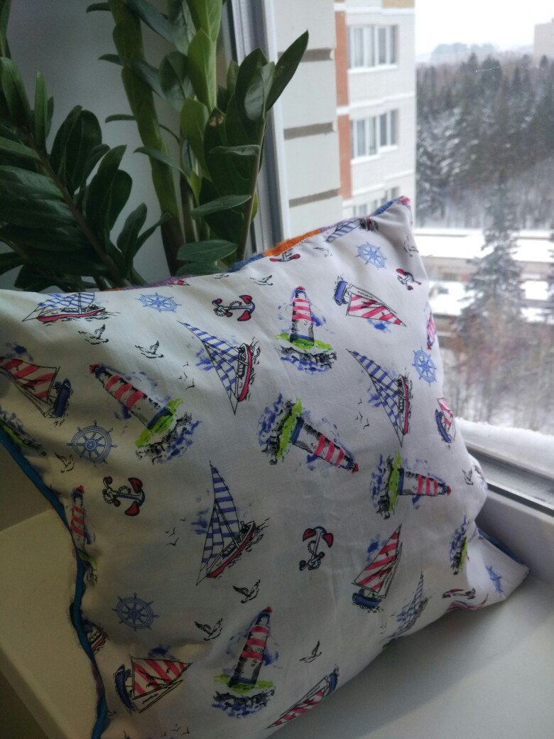 Работа вышивалась «набегами», между делами, по одному ромбу. Преимуществом является возможность быстрого включения в работу без лишнего поиска схемы, что мне, как мамочке непоседы, пришлось очень кстати. В целом, набор оставил после себя приятные впечатления, а получившаяся подушка будет украшать кроватку ребенка. Так же для шитья подушки можно приобрести на сайте специальный задник, но я использовала купленный по случаю отрез ткани.