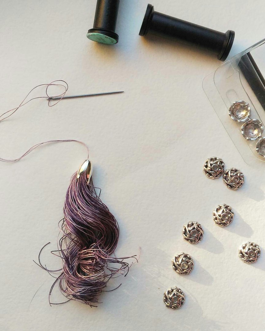 Начну с кисточек. Ниточки пришли 2 катушки по 20м. Это 105 оборотов намотки на пластиковой карте)), чтоб вы имели представление. Нехитрыми математически действия у нас выходит 40 метров счастья и 210 оборотов в моем распоряжении. Конечно, это мало для упитанных в себе кисточек, как минимум 100м нужно в моем случае, но я очень довольна ниточками, а кисточки получились стройные, модельные.