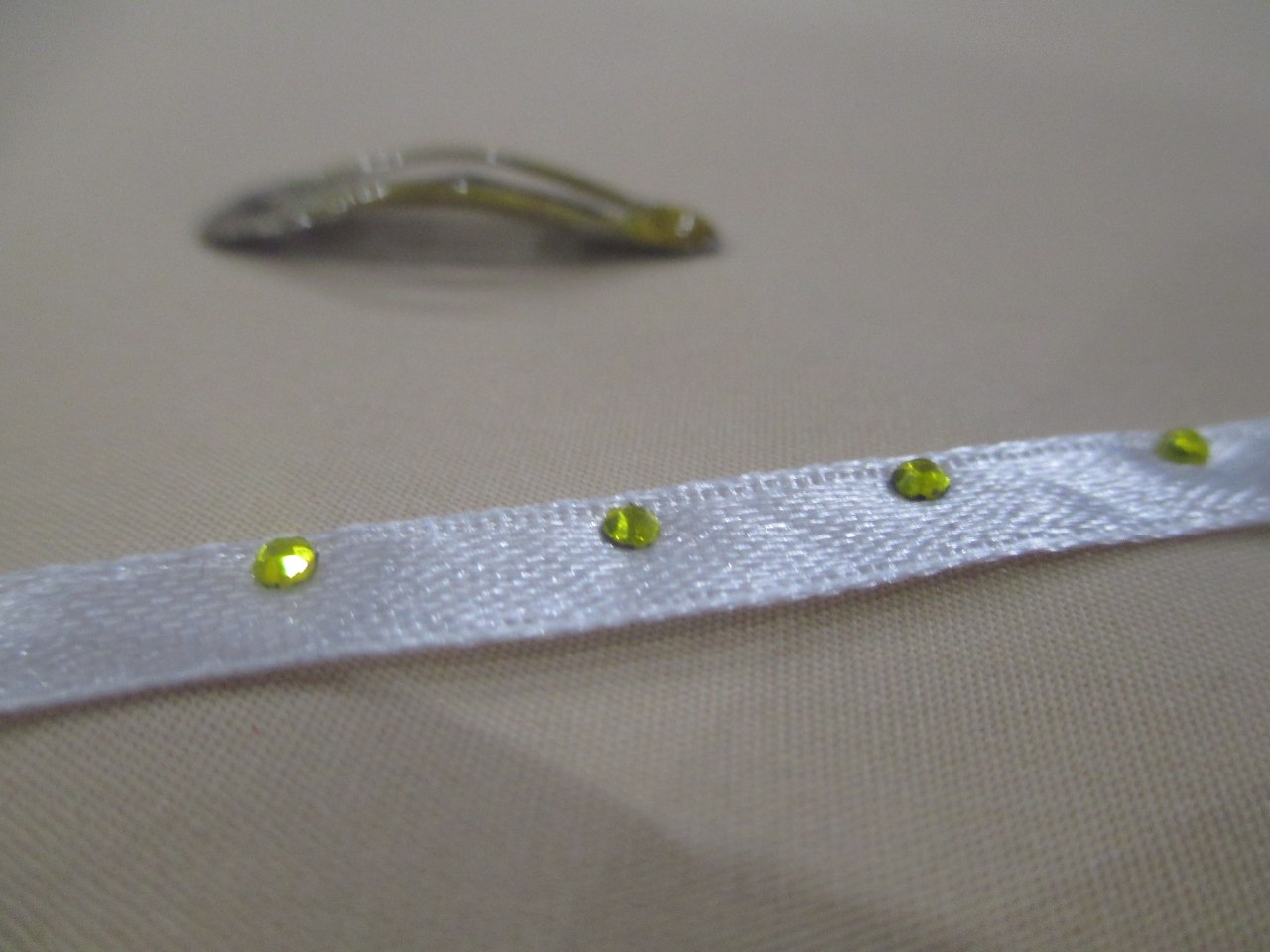 Мое увлечение, это изготовление интерьерных игрушек и кукол, и термоклеевые стразы я использую в декоре одежды и аксессуаров для них. Лимонно-желтые стразы арт.56535 я использовала в аксессуарах к наряду куколки - на сумку и заколку. В самом начале использования, стразы было сложно клеить и подхватывать, так как размер страз очень маленький. Но потом, с помощью обычной зубочистки, дело пошло намного быстрее. Возможно для работы с такими мелкими предметами необходимы специальные инструменты - пинцеты с узким носиком.