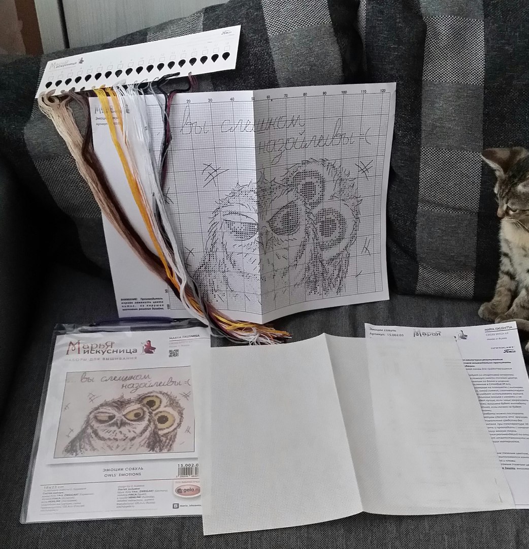 Мною получен набор для вышивания фирмы Марья Искусница « Эмоции совуль» в рамках тестирования продукции gela.ru. Набор создан по мотивам работы О. Куреевой арт. 15.002.03