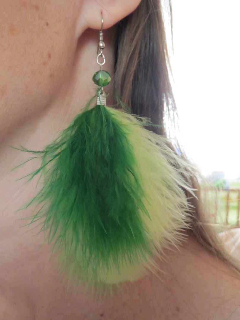 Всем привет!!! Вчера меня посетило пушистое вдохновение, и я сотворила такие вот сережки. До чего же они легкие и воздушные! Перышки нашлись прямо один к одному, да еще таких гармоничных оттенков. Очень кстати, что у меня под рукой оказались с набор перьев марабу (арт 216619943), полученный на тестирование от портала GELA.ru. В пачке с зелеными перьями марабу (арт 216619943) оказалось ровно 15 перьев, как и заявлено на упаковке, но неодинаковой длины и формы (хотя на упаковке указана длина 10 см). На каждую сережку я использовала по три перышка разного оттенка примерно одинаковой формы и текстуры. У меня еще остались более длинные и изогнутые перышки, они отлично подойдут для скрапа. Думаю, применить их для новогодних открыток – чем не мини-елочки?)))