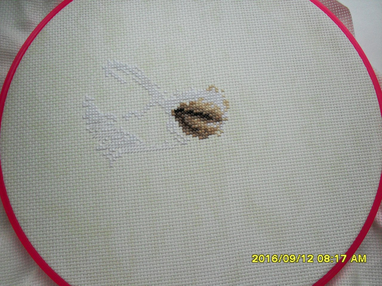 При первом взгляде на схему я решила, что отошью данный набор довольно быстро. Честно говоря, я очень ошибалась!!! Самое удобное - вышивать темные области сов, потому что там значки различаются более четко. В светлой области "лица" совы был полный атас - два значка у меня в глазах просто сливались, из-за чего приходилось либо часто распарывать работу из-за многочисленных косяков, либо делать частые перерывы для отдыха глаз. Это первый минус.