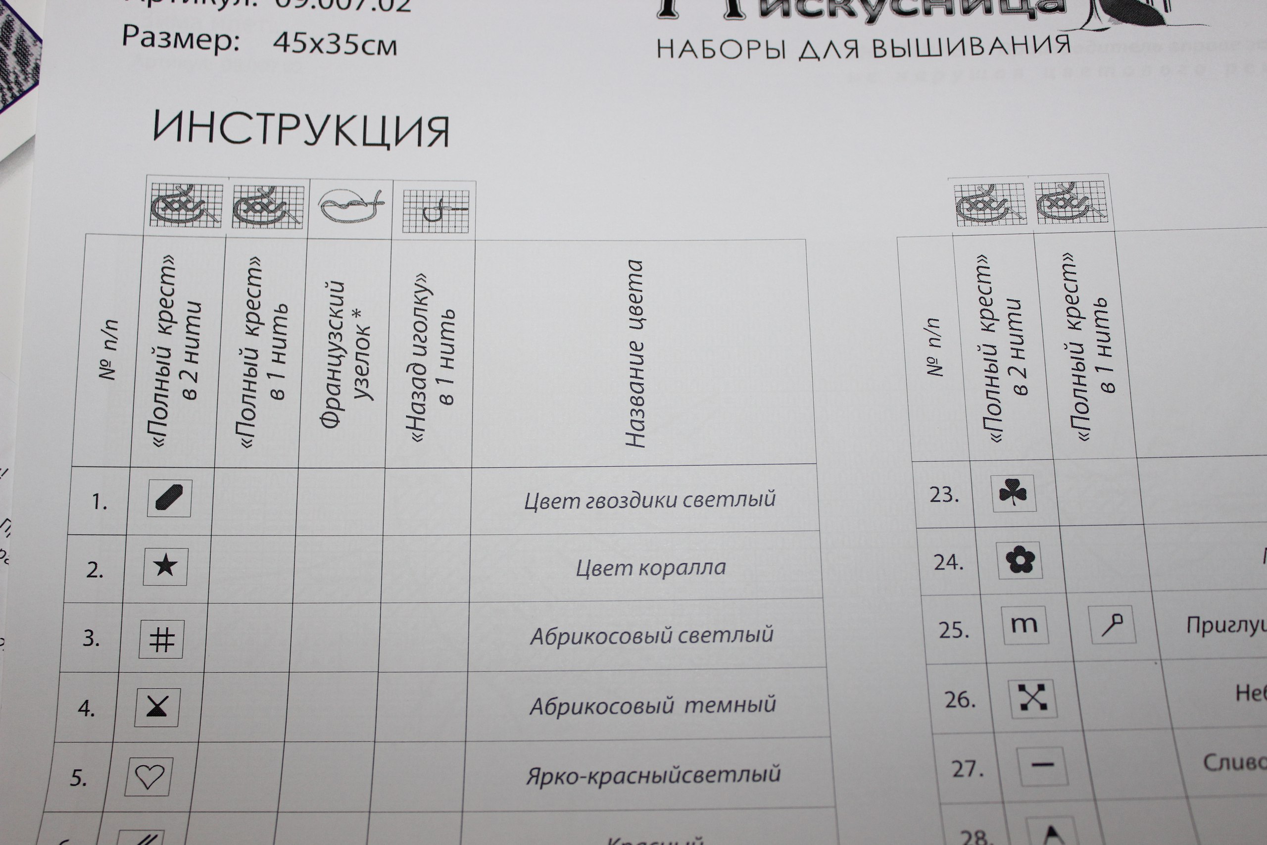 Вкладыш =гарантийный талон=. На фоточке видны строчки, которые нужно будет заполнить, если что-то с набором для вышивания не так. Это приятный момент. Первый раз за три года увидела такую штуку! А ведь были ситуации, когда, например, ниток не хватило на отшив, и пришлось самой их докупать. Это хорошо если нужный цвет будет в продаже, а если нет, то придется подбирать "на глаз", что может испортить результат отшитой работы.