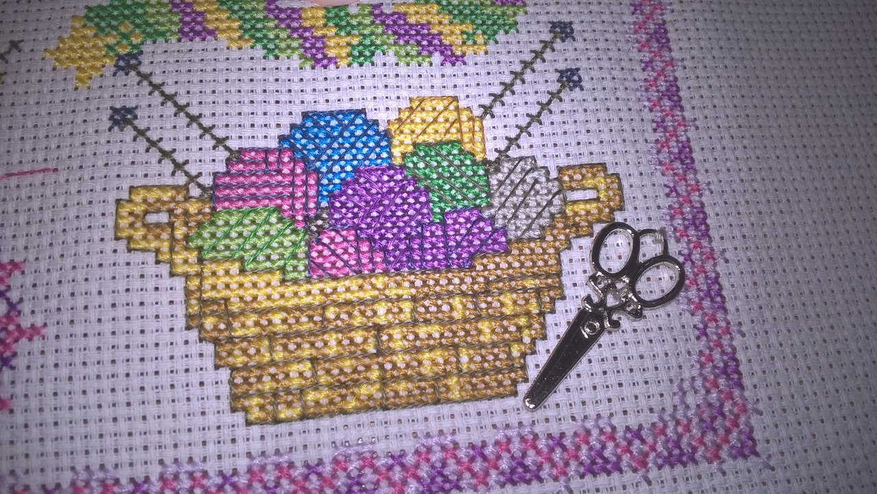 Но начну о минусах данного набора, категорически не понравилась игла. Я подумала, раз тестирование идет набора в целом, то буду пользоваться всеми составляющими набора, но не тут то было. Игла стала перетирать нить уже после 10-12 крестиков. И тут я ее сменила на привычную мной иглу( любимицу), второй минус незначительный,но все же. При упущен один крест( я обвела его кружком на фото) . О плюсах. Яркие,красивые нитки Finca, ими я вышивала тоже впервые, потрясающе ровно ложатся на канву. Канва-жесткая приятная,хоть непривычная мне 14 каунта, поначалу крестики казались огромными, но быстро привыкла. Схема-крупная, понятная, черно-белая,все как я люблю. Очень понравились шармики,которые были в наборе,хоть они отличаются от того,что показано на обложке,но это нисколько не расстроило.