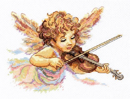 Одним из первых наборов,который я вышивала стал набор от"Чудесной иглы"-"Тонкие струны любви".Комплектация набора,в целом,мне понравилась-мулине было распределено по цветовой гамме на органайзере,хватило их с запасом.Канва достаточно накрахмалена,можно было вышивать и без пялец.Схема цветная,цвета очень мягкие,не сильно яркие,но и не тусклые.Мне,как человеку,который носит контактные линзы,было достаточно комфортно по ней вышивать,так как глаза не уставали.Единственная ложка дегтя-это игла,которая практически сразу почему -то сломалась.Хотя возможно это я прилагала большое усердие)))Набор я отшила за неделю,теперь ангелочек занимает почетное место у мамы дома.Правда бэк я не делала,так как тогда я с ним категорически не дружила)))