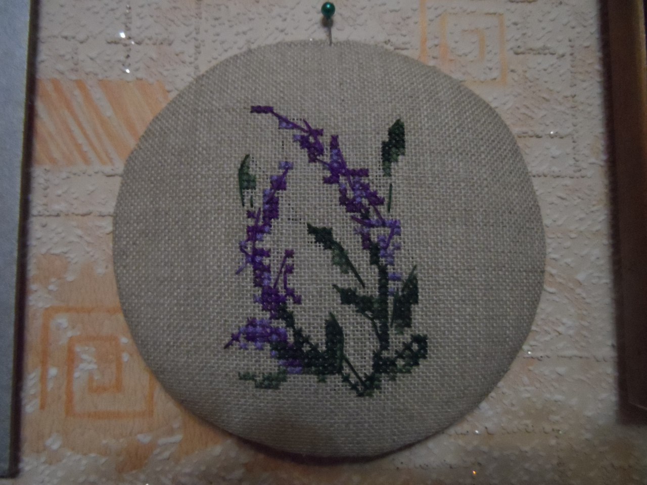 После вскрытия канвы у меня случился небольшой ступор, так как раньше я таким материалом не пользовалась. Ниточки все разной толщины. По началу пропало желание ее даже пробовать,но женское любопытство взяло верх)). Мною был подобран совсем небольшой сюжетик-веточка лаванды. На удивление,подобрав нитки и взявшись за отшив,я поменяла свое мнение-ОНА МНЕ ПОНРАВИЛАСЬ. А как смотрится уже отшитый сюжет, мммммм...