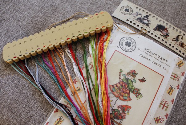 1. Неудобный органайзер, хоть и красивый - мелкие отверстия для мулине. Поэтому я перенавесила все нитки на органайзер Дубко и работа стала сразу приятной