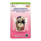 Кроме кнопок мне понадобился набор для установки этих кнопок, который я также тестировала впервые. Вот такой вот наборчик: НАБОР ИНСТРУМЕНТОВ ДЛЯ УСТАНОВКИ КНОПОК ТИП "B" артикул 408.NT. В состав входит ручной дырокол, и само "устройство". Кнопки HEMLINE устанавливаются очень легко, инструкция прилагается. Кроме инструмента, который прилагается нужен еще и молоток. Не зафотала инструменты :( увы, забыла.