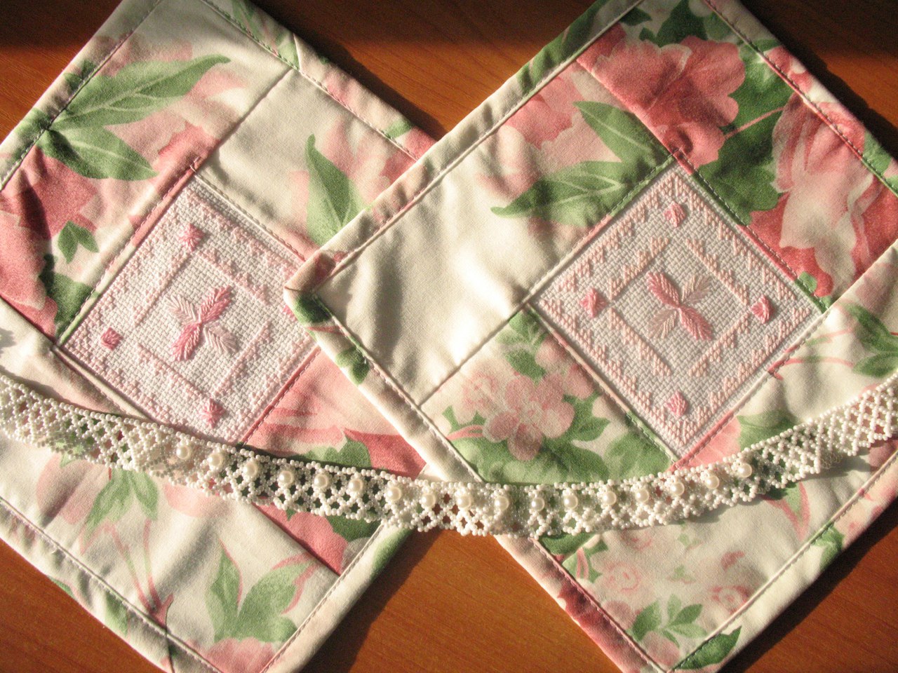 Основную характеристику уже написала, а теперь о результатах. Решила сшить салфетки для стола, ткань взяла из своих запасов, уплотнитель-фланель белого цвета.