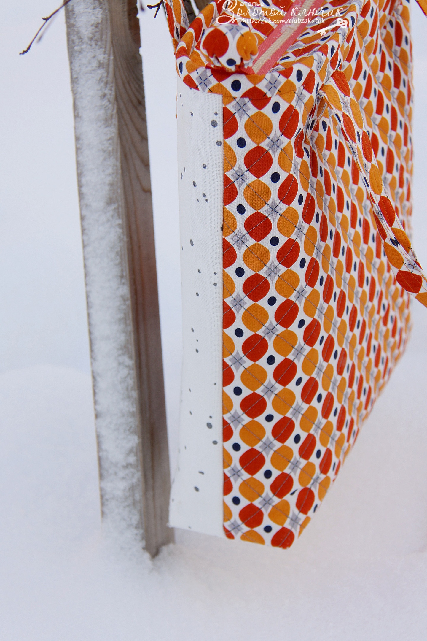 тут мой отчёт и ощущения в процессе вышивки. После стирки крестики разгладились, ткань немного подсела, и уже нет ощущения рыхлости и прозрачности. Приятно. В пошиве всё как обычно - ткань плотная, хорошо держит форму. Я решила оформить вышивку в сумку, тканью-компаньоном послужил американский хлопок.