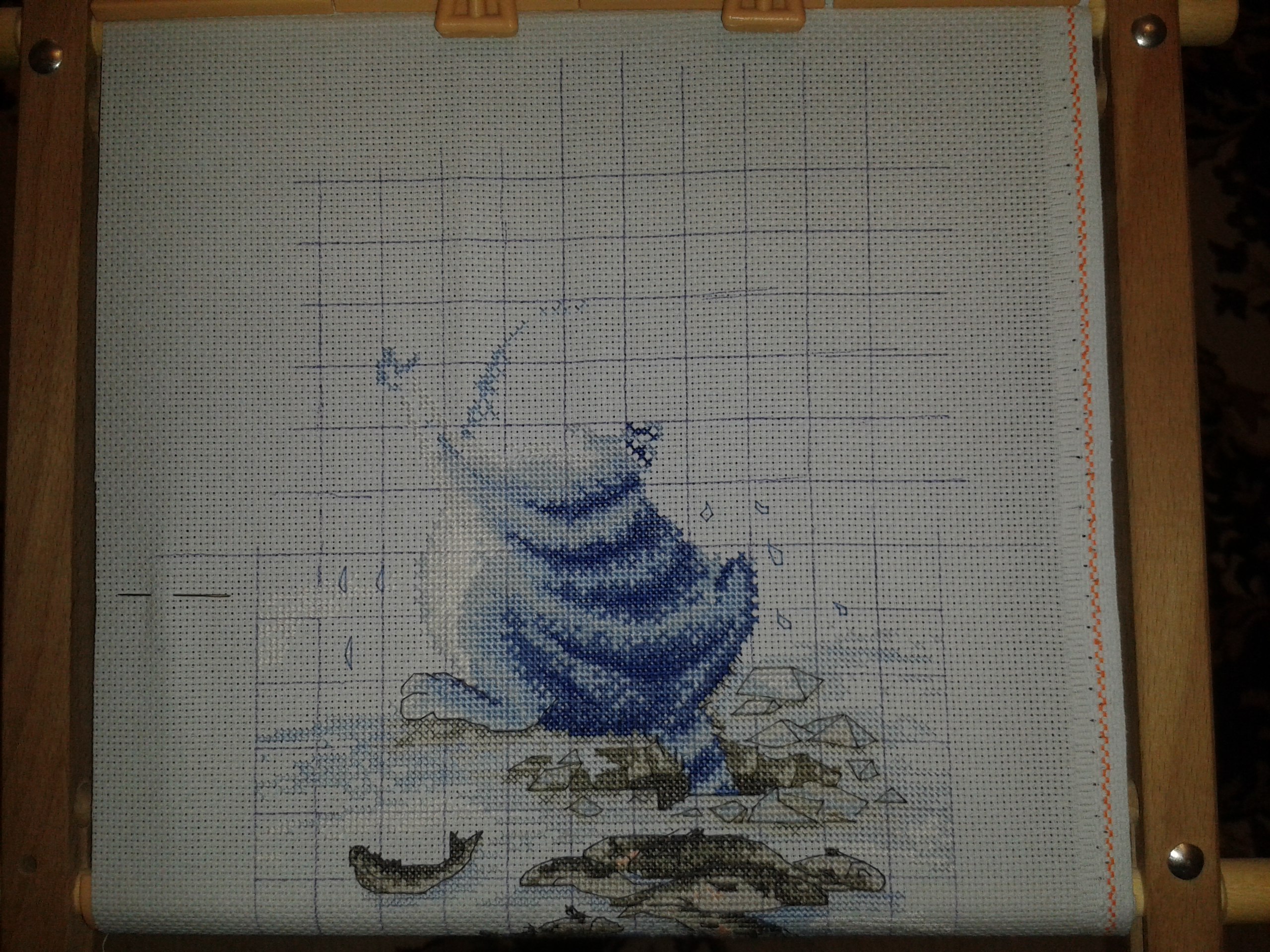 В работе использованы стежки полный крест, полукрест и счётный бэкстич.