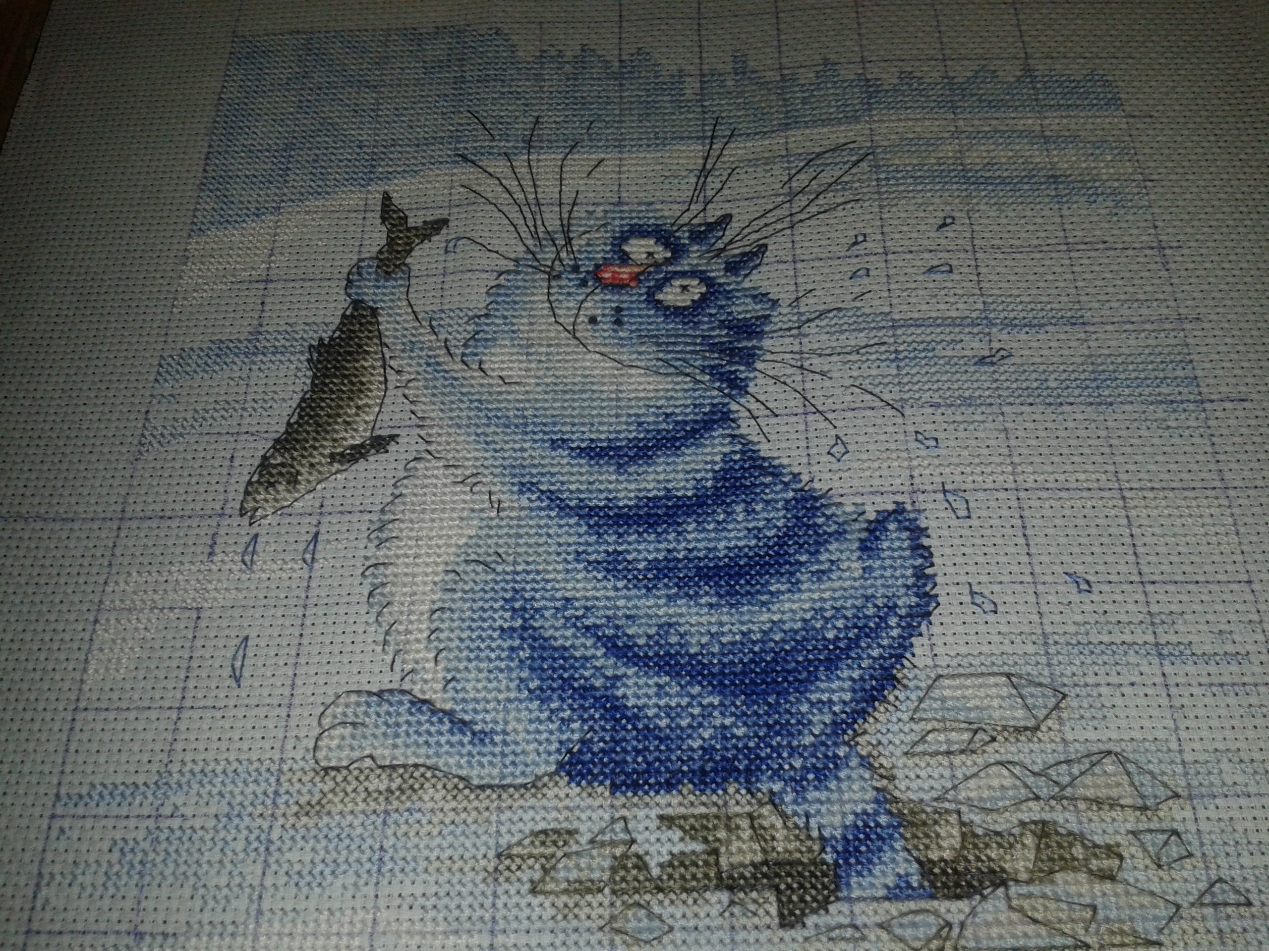 2. На схеме в середине моего кота были пропущены значки-обозначения, т. Е. клеточки были совсем пустые. Зашивала рядом стоящими цветами