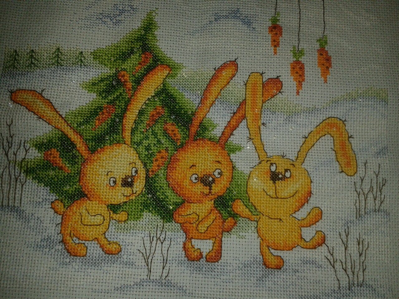Отзыв рукодельницы Татьяны Стоковой о наборе фирмы "Марья искусница" по рисунку Виктории Кирдий "Заячья радость".