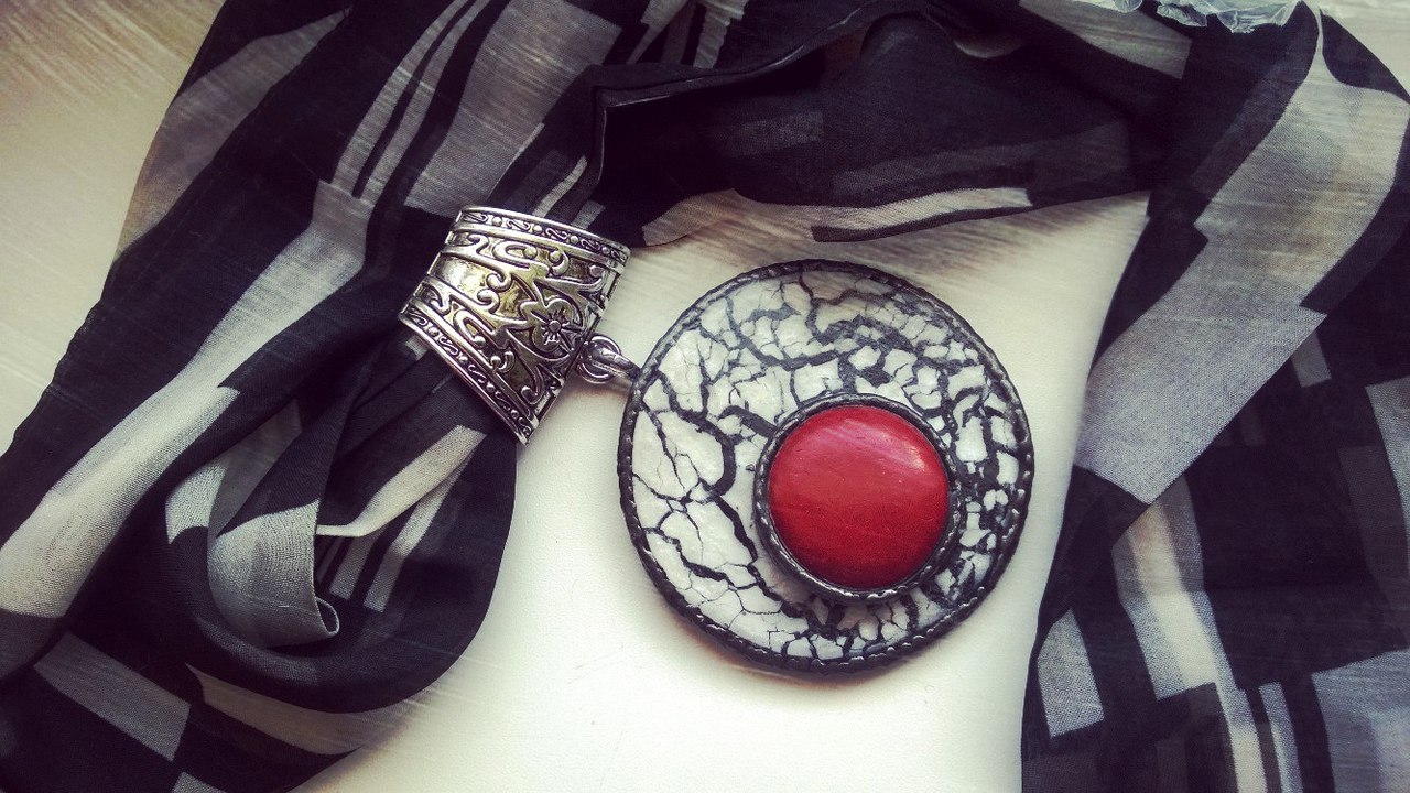 Получив их меня сразу захотелось сотворить что-то необычное. И я изучила технику кракелюр. Точнее выработала свою. Что-то среднее между всеми описанными в интернете. В результате получилась такая вот пепельница и черно-белый кулон с имитацией камня.